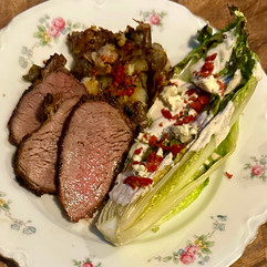 Grilled Tri-Tip with Smashed Sunchokes. Grilled Romaine Wedge Salad.