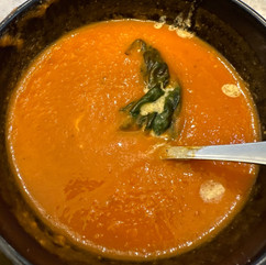 22.02.12 | Saturday | Multigrain toasy with raw almond butter | Tomato & Garlic Soup | Za'atar Salmon and tahini sauce, sesame roasted broccoli, wild rice |