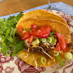 23.05.31 | Wednesday | 4 mile hike. Stretches before and after. And then a 1 mile walk in evening w/ Luci | barley with almonds, apricot slices and local honey | Playa Salad from the Montauk in Scottsdale...super yummy! | Taco Night! Beef with homemade seasoning blend, avocado, turnips, lettuce, tomato...and homemade crunchy corn tortillas |