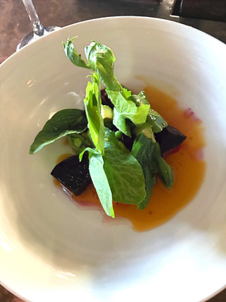 My dear friend treated me to this phenomenal dinner, where we ordered something different from each course, and shared...so instead of 4 courses, we both really got 8, in addition to the amuse bouche, bread service and bit of dark chocolate at the conclusion of our meal. After the scrumptious taste of the amuse bouche (top left), our "un" appetizer courses came out - the crudo (3rd on top) and tomate (top right) were both unique, and the tomate had an especially surprising depth of flavor. We agreed this was our favorite dish of the evening! For our "deux" course, we ordered the betterave & champignon (middle) again, SO tasty! Our "trios" courses were the turbo (2nd on bottom) and the Canard (3rd on bottom). The duck was cooked to mouth-watering perfection. Our dessert course "quatre" consisted of the miele (bottom right) and the fromage (not pictured). If you like very strong, stinky cheese, as I do, you'll love this dish. The dark chocolate bite served at the conclusion was delicious as well. Wonderful, memorable meal out!
